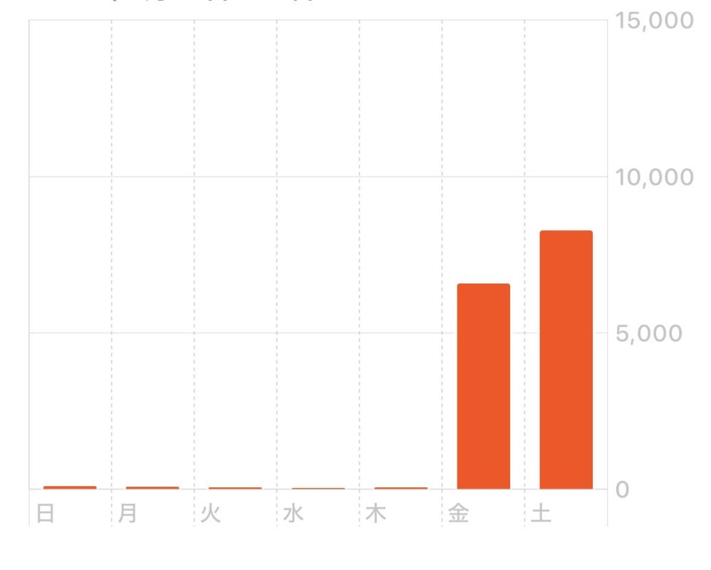私はフルリモートで働いているので(日本時間の月〜金)、平日の歩数が壊滅的になっています。80歩とか。